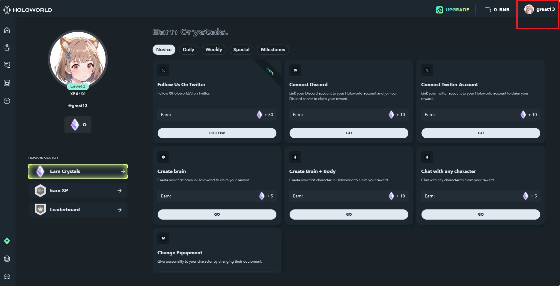4) Earn Crystals 클릭해서 미션 수행