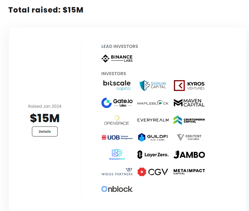 SkyArk Chronicles 는 바이낸스 랩스로부터 무려 15m 투자를 받었고, 투자자에 레이어제로도 보입니다.