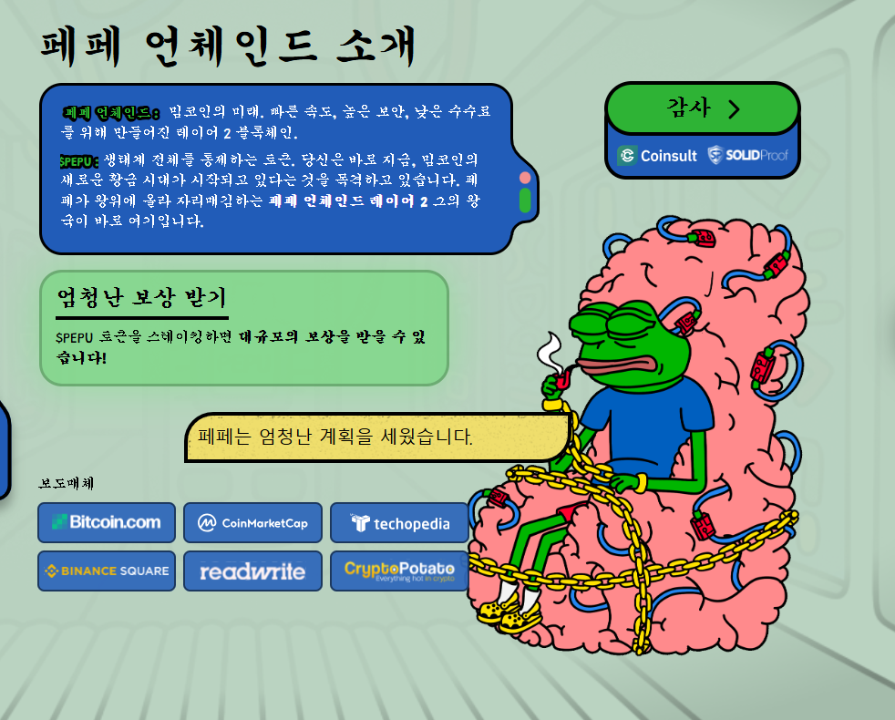 페페 언체인드(PEPU)는 2024년 가장 주목받고 있는 신규 밈코인 중 하나입니다. 이 코인은 이더리움 레이어 2 체인에서 운영되며, 기존의 페페 밈을 한 단계 업그레이드한 버전입니다. 레이어 2 체인을 사용함으로써 거래 속도가 이더리움보다 100배 빠르고, 거래 수수료도 저렴합니다. 이러한 특성은 거래 빈도가 높은 밈코인에게 최적화된 환경을 제공합니다.