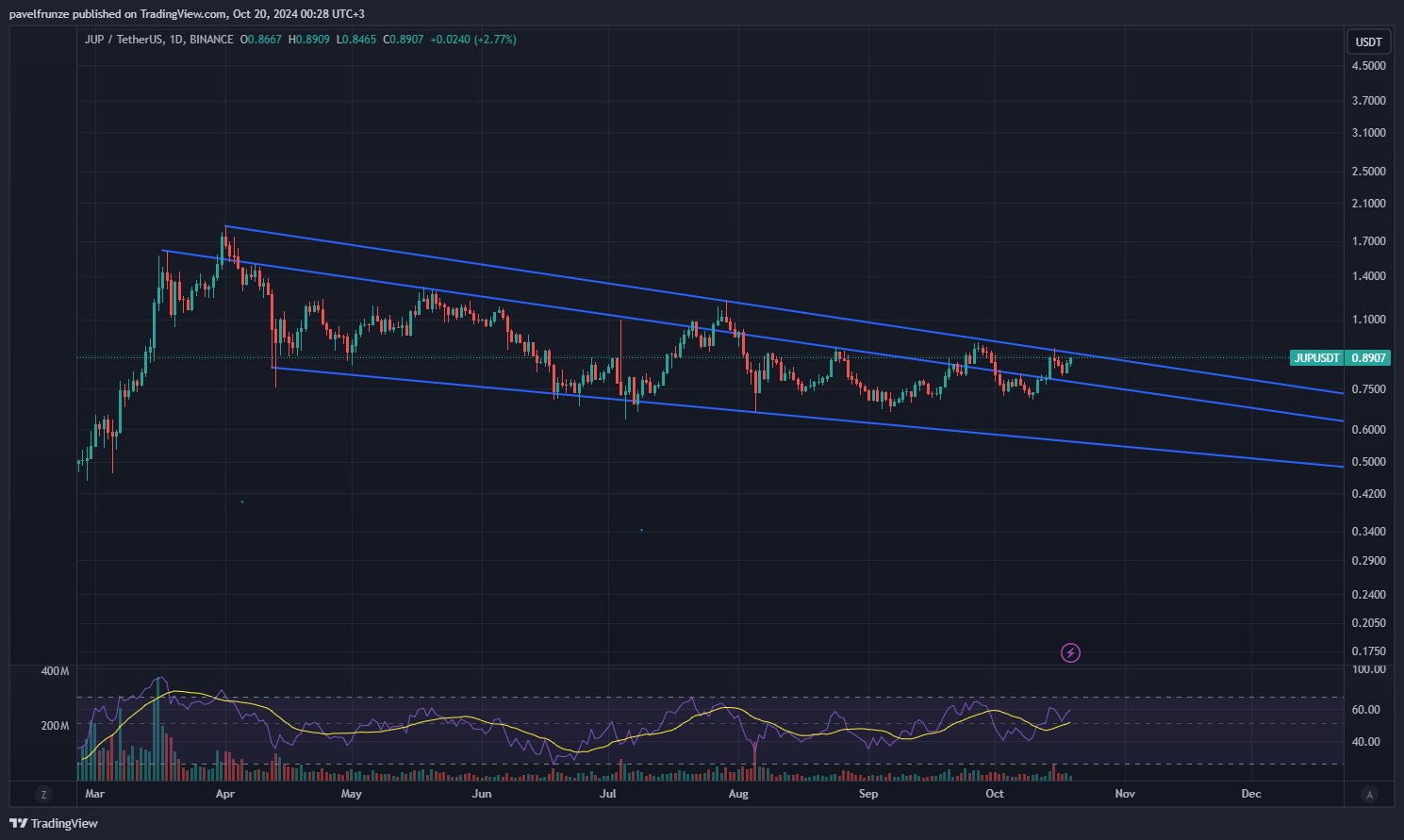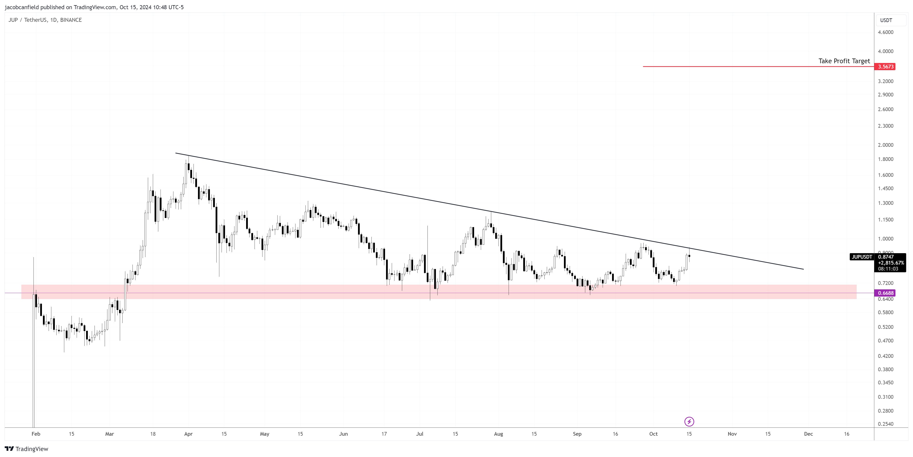 SOL 코인은 브레이크아웃 후 수십 배의 가격 상승을 경험했는데, JUP 코인도 유사한 흐름을 보인다면 2025년 중반까지 빠르게 가격이 2배에서 5배 이상 상승할 가능성이 있습니다. 만약 JUP 코인이 $0.87의 저항을 돌파하고 안정적으로 $1 이상의 가격대를 유지한다면, 투자자들이 더욱 큰 상승 기대감을 가지게 될 것입니다.