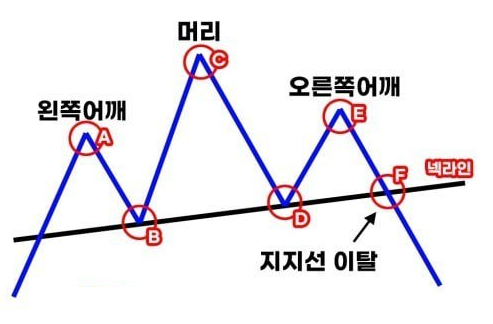 이번 포스팅에서는 비트코인 차트에서 보이는 헤드앤숄더 패턴에 대해 알아봅니다. 헤드앤숄더 패턴은 추세의 반전 형성을 의미합니다. 피크(어깨), 더 높은 피크(헤드), 그리고 낮은 피크(어깨)로 이뤄집니다. 이 때 넥라인은 어깨 지점들을 연결해서 완성합니다.