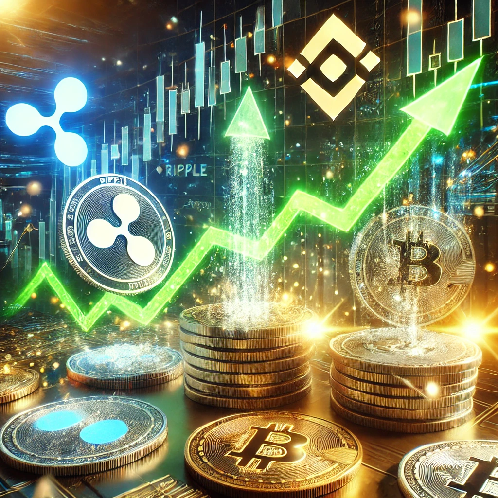 - 리플(Ripple) : SEC 소송에서 유리한 흐름을 보이며 3,400원에 거래되고, 최근 200%의 상승률 기록.