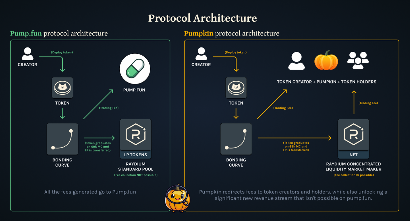 Pumpkin은 Solana 블록체인을 기반으로 하며, 주요 기술적 요소는 다음과 같습니다.
