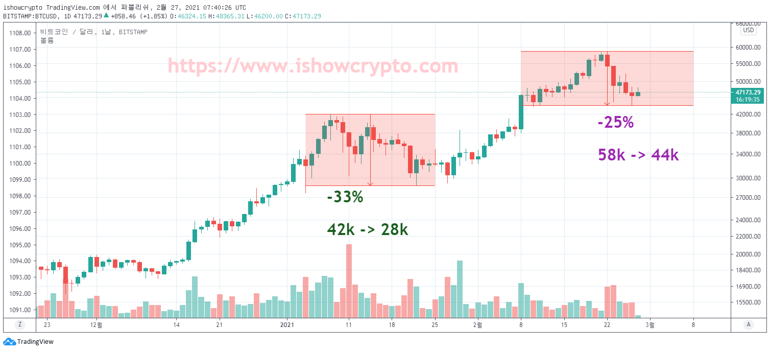 1월 : 42k -> 28k (-33% , 조정 기간 14일)